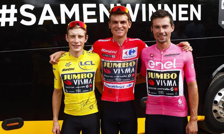 Route - BilanComment décrire la saison 2023 de la Jumbo-Visma ? Énorme, incroyable, phénoménale, monumentale, fantastique… Bref, les adjectifs nous manquent pour évoquer cette année qui restera sans nul doute encrée dans les mémoires. Avec ses victoires sur les trois Grands Tours et qui plus est avec trois coureurs différents (Primoz Roglic sur le Giro, Jonas Vingegaard sur le Tour de France et Sepp Kuss sur La Vuelta, ndlr), la formation néerlandaise a réalisé ce qu’aucune autre avait fait auparavant. Retour sur une année historique, qui a marqué le monde du vélo.