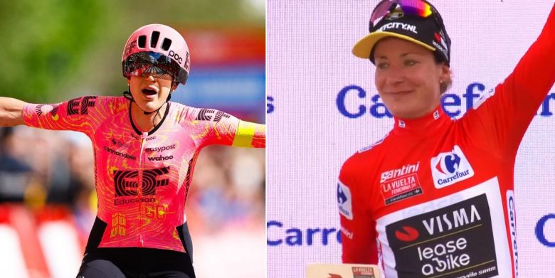 La Vuelta FemeninaPourtant anodine sur le papier et destinée à un sprint massif, la 4e étape de La Vuelta Espana Femenina by Carrefour.es a été remportée par Kristen Faulkner (EF Education-Cannondale) mais a surtout offert un superbe spectacle et un premier tournant sur cette 10e édition ! Car si ce parcours long de 142,3 kilomètres ne présentait aucune difficulté, le vent s'est joint à la partie et a provoqué de belles bordures... à plus de 100 kms de l'arrivée ! Sous l'impulsion de la Team SD Worx - Protime - qui a placé six de ses coureuses à l'avant dont Demi Vollering - un groupe de 18 a pris le large et distancé le reste du peloton et des favorites, Evita Muzic (FDJ-SUEZ), Liane Lippert (Movistar Team) et Gaia Realini (Lidl-Trek) étant les grandes battues du jour. A l'issue d'une course effrénée jusqu'à la ligne - cette étape étant la plus rapide de l'histoire de l'épreuve à près de 46,7 km/h de moyenne ! - le peloton principal n'a jamais pu faire son retour et termine à deux minutes de la lauréate du jour, Kristen Faulkner !