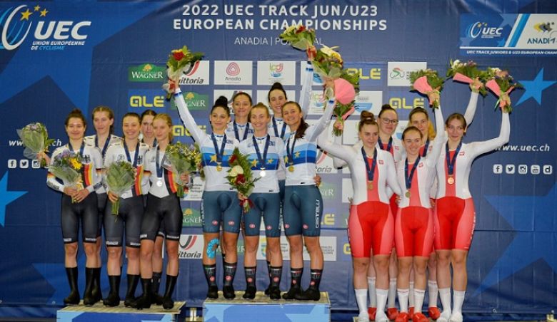 Piste - Europe (U23 et J)Débutes jeudi à Anadia, au Portugal, les Championnats d'Europe Juniors et Espoirs se sont poursuivis vendredi. Et contrairement à la journée inaugurale, lors de laquelle l'équipe de France avait décroché deux médailles, dont celle en or de Rafael Delhomme sur le scratch Juniors, aucun Bleu n'est parvenu à monter sur le podium lors de cette deuxième journée de compétition. La meilleure performance a été réalisée par le trio Thierry Fontanille-Timmy Gillion-Luca Priore, qui a pris la quatrième place en vitesse par équipes Espoirs. Retrouvez ci-dessous tous les podiums de la deuxième journée de cet Euro Espoirs et Juniors 2022.