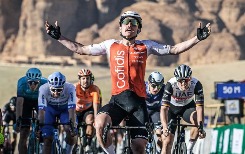 Saudi TourAprès la prise de pouvoir de Ruben Guerreiro (Movistar Team) la veille, la 5e et dernière étape du Saudi Tour - et ses 142.9 km entre Alula et Maraya - offrait un terrain propice pour un ultime sprint vendredi. Comme prévu, c'est une arrivée groupée qui a conclu cette édition 2023, avec la victoire de Simone Consonni ! L'Italien de la Cofidis a profité de l'aspiration d'un Dylan Groenewegen (Team Jayco AlUla) parti bien trop tôt dans ce sprint en faux plat montant et finalement 4e, avant de résister au retour de son compatriote Matteo Malucelli (Bingoal WB) et de Pascal Ackermann (UAE Team Emirates), respectivement 2e et 3e. Logiquement, pas de changement au général avec la victoire de Ruben Guerreiro devant Davide Formolo (UAE Team Emirates) et Santiago Buitrago (Bahrain Victorious).