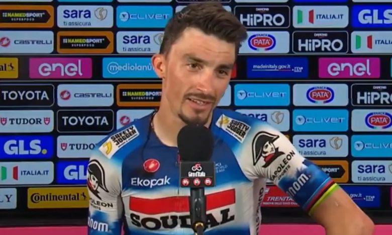 "Je n'avais pas planifié de partir de si loin, je m'attendais à partir dans un gros groupe. D'abord, j'aimerais remercier mes coéquipiers, qui ont parfaitement contrôlé le début de la course. Puis je me suis retrouvé à l'avant avec Mirco Maestri et je lui ai dit qu'il fallait qu'on y aille à fond. Il aurait aussi mérité de gagner aujourd'hui, on a vraiment bien collaboré ensemble", déclare Alaphilippe à l'arrivée. "Je croyais que je pouvais gagner, mais j'ai vraiment dû rouler à bloc jusqu'au dernier kilomètre, parce que je savais que Jhonatan Narvaez n'était pas loin. C'était mon rêve de gagner une étape sur le Giro, je l'ai fait et je suis très heureux."