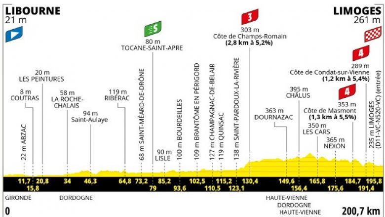 - Samdi 8 juillet - Étape 8 : Libourne - Limoges, 200,7 km (départ réel à 12h45, arrivée vers 17h20)