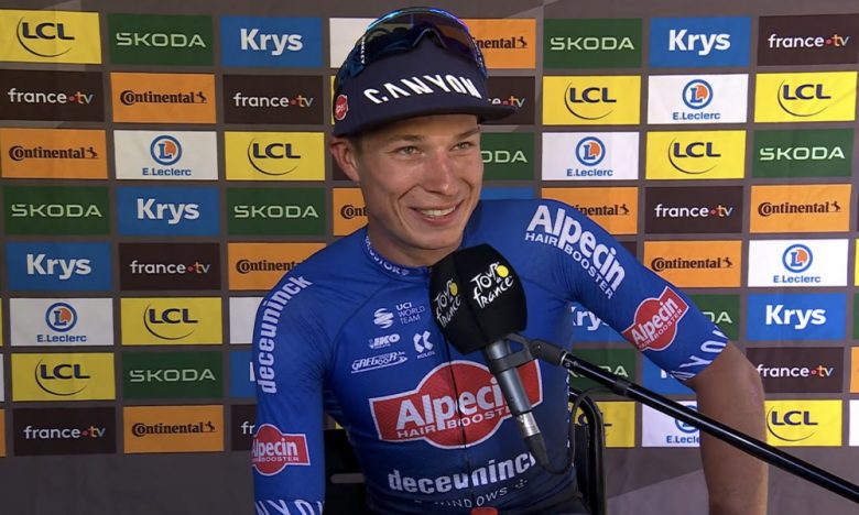 Tour de FranceConsidéré par la majorité des suiveurs comme le meilleur sprinteur du monde, Jasper Philipsen a confirmé son statut sur la première arrivée massive de ce 110e Tour de France. Parfaitement lancé par son équipe Alpecin-Deceuninck et notamment son poisson-pilote de luxe Mathieu Van der Poel, le Belge a remporté cette 3e étape. Malgré un sprint assez houleux et revisionnage des images par le jury des commissaires, Philipsen a bien été chercher son 3e succès sur le Tour, après les deux de l'an passé. "J’étais un peu dans le doute pendant que le jury a décidé, mais ça pimente un peu le dénouement ! Sur le final de l’étape, c’était très tendu, mais c’est le Tour de France. Personne ne fait de cadeau, tout le monde est à fond", déclare Philipsen à l'arrivée.