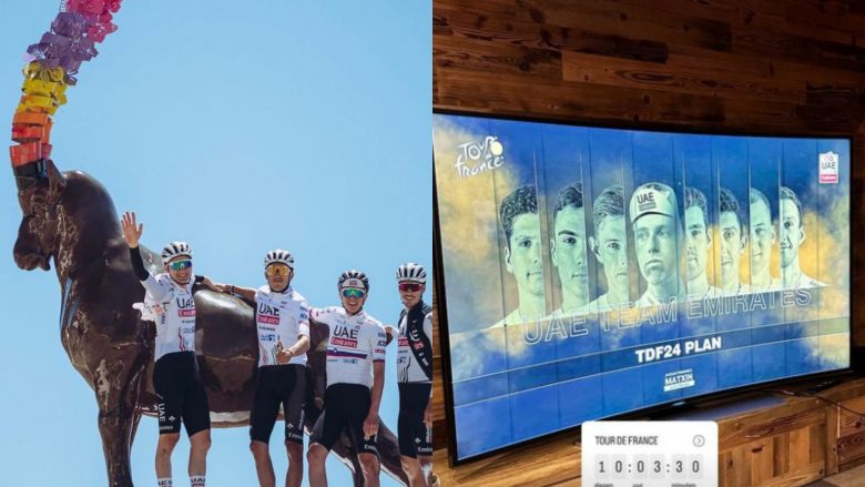 Tour de FranceActuellement en camp d'entraînement dans les Alpes, Tim Wellens (UAE Team Emirates) a posté une "story" intrigante sur son compte Instagram. On peut y voir 8 visages sur une télévision avec un compte à rebours visant la date du début du Tour de France. Sur cette photo, on voit (de gauche à droite) Joao Almeida (récent deuxième du Tour de Suisse et double vainqueur d'étape), Juan Ayuso (vainqueur du Tour du Pays basque), Nils Politt (3e du Tour des Flandres), Tadej Pogacar, Pavel Sivakov (2e du Tour des Abruzzes), Marc Soler (4e du Tour du Pays basque), Tim Wellens (2e de Kuurne-Bruxelles-Kuurne) et Adam Yates (vainqueur du Tour de Suisse). Une "Dream Team".