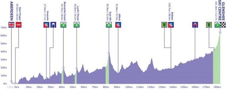 Dimanche 4 septembre - étape 1 : Aberdeen - Glenshee Ski Centre, 181,3 km (départ réel à 11h15, arrivée vers 15h35)
