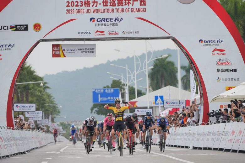 Tour de GuangxiTroisième journée sur ce Tour de Guangxi... et 3e sprint ! En effet, ce début de l'épreuve chinoise souris aux hommes rapides, et c'était une nouvelle fois le cas sur cette étape autour de la ville de Nanning (134 km). Et on a eu un nouveau vainqueur, puisque c'est Olav Kooij qui s'est imposé ! Le Néerlandais de la Jumbo-Visma s'est montré le plus costaud dans le sprint final et vient là chercher sa 12e victoire de la saison, sa 3e en WorldTour. Une performance exceptionnelle pour le coureur de seulement 21 ans, qui en est déjà à 27 succès en carrière. Sur ce sprint, il a devancé deux de ses compatriotes Rick Pluimers (Tudor Pro Cycling) et Marijn Van den Berg (EF Education-EasyPost). Au classement général, c'est la grosse surprise du jour, puisque grâce aux bonifications engrangées tout au longs des étapes, c'est Dries De Bondt (Alpecin-Deceuninck) qui s'empare du maillot de leader, 2" devant Jonathan Milan (Bahrain Victorious) et 8" devant Olav Kooij.