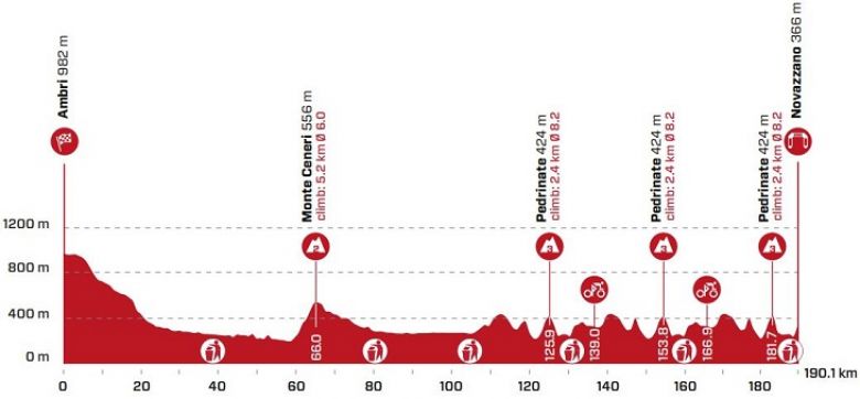 Pedrinate (km 181,7 / 3e catégorie) : 2,4 km à 8,2% (max 10,7%)