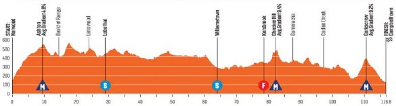 Checker Hill (km 82,2 / 1ère catégorie) : 1,1 km à 9,4% (max 18.9%)