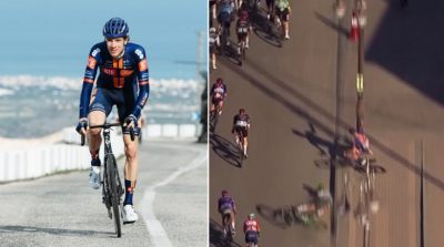 AlUla TourC'est malheureusement l'une des images fortes d'une 3e étape de l'AlUla Tour très mouvementée ce jeudi. Après une belle bataille dans le vent et les bordures et juste avant que Tim Merlier (Soudal Quick-Step) ne triomphe à nouveau au sprint, l'emballage final a été marqué par une chute à haute vitesse et très violente sur la droite de la route. C'est d'abord l'Espagnol Gorka Sorarrain (Caja Rural-Seguros RGA), inattentif et ne regardant pas sur sa droite, qui a été percuté par un autre coureur et a lourdement chuté. En voulant l'esquiver, le malheureux Nils Eekhoff (Team Picnic PostNL) a lui fini sa course sur le trottoir et percuté de plein fouet un poteau ou un lampadaire. Des images qui font froid dans le dos et qui ont logiquement conduit à l'abandon du Néerlandais.