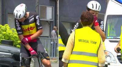 Antwerp Port EpicLa saison cauchemar se poursuit pour Arnaud De Lie... Alors qu'il semblait enfin retrouver du poil de la bête avec un podium encourageant sur la Brussels Cycling Classic dimanche, le Taureau de Lescheret a connu un nouveau coup dur ce lundi 9 juin sur l’Antwerp Port Epic, chutant lourdement à un peu plus de 100 kilomètres de l’arrivée. Le leader de l’équipe Lotto a tenté de couper un virage avant de heurter un panneau de signalisation et de faire un soleil. Visiblement touché au bras droit, le champion de Belgique a tenté de repartir... en vain. Quelques dizaines de mètres plus loin, il a été contraint d’abandonner et de partir en ambulance. Pour l'heure, la formation belge n'a pas communiqué sur son état de santé, dans l'attente des examens, mais les prochaines échéances du Belge semblent compromises, lui qui était prévu sur le Tour de Suisse (15-22 juin) puis le Tour de France (5-27 juillet).