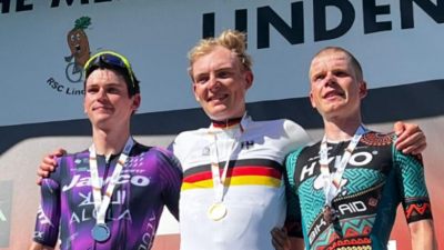 Championnats d'AllemagneIl l'aura mérité son titre de champion national ! Victime d'un problème mécanique, Georg Zimmermann (Intermarché-Wanty) était le plus fort ce dimanche pour revenir dans la dernière ascension de la journée, puis s'imposer au sprint face à Felix Engelhardt (Team Jayco AlUla) et Anton Schiffer (BIKE AID). Accompagné par Lennard Kämna (Lidl-Trek), qui prendra finalement la 4e place, le coureur de Intermarché-Wanty a repris les fuyards et les a réglé au sprint. Les 200 km de course ont malgré tout été amputés de deux têtes d'affiches que sont Marco Brenner (Tudor Pro Cycling Team), tenant du titre et victime d'une lourde chute sur le Tour d'Italie, et Florian Lipowitz (Red Bull - BORA - hansgrohe) qui a privilégié sa préparation du Tour de France.