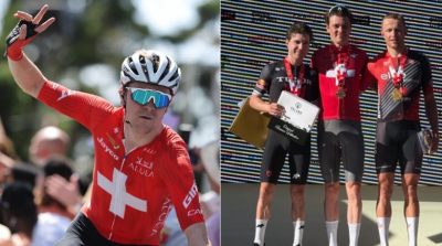Mauro Schmid reste le maître en Suisse ! Après avoir conquis le titre national sur le contre-la-montre jeudi, le coureur de la Team Jayco AlUla a conservé le sien sur la course en ligne ce dimanche pour réaliser un superbe doublé. A l'issue du parcours de 179.4 km tracé à Fischingen, quatre coureurs sont arrivés au sprint pour la victoire : Marc Hirschi (Tudor Pro Cycling Team) faisait figure de favori mais a finalement dû s'incliner face à Schmid, tandis que Valentin Darbellay et Arnaud Tendon, les deux pensionnaires de l'équipe Elite Fondations Cycling Team, se sont contentés des 3e et 4e places. Arrivé 20 secondes plus tard, Jan Christen (UAE Team Emirates-XRG) termine 5e.