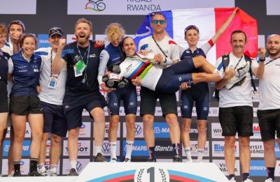 Championnats du mondeAprès les épreuves contre-la-montre, place désormais aux courses en ligne dans cette deuxième partie des Championnats du monde de cyclisme sur route 2025. Pour ouvrir le bal ce jeudi 25 septembre, les Espoirs Femmes se disputaient pour la première fois de l'histoire le titre mondial dans une course à part de celle des Elites, preuve de la nouvelle dimension prise par le cyclisme féminin. Les meilleures coureuses U23 devaient ainsi affronter à huit reprises le circuit en ligne de Kigali, pour un total de 119.3 km. Et grâce à une prestation collective parfaite de l'équipe de France, illustrée par le sacrifice et le travail énorme de Marion Bunel pour faire la différence dans le final, Célia Géry est devenue la première championne du monde officielle de la catégorie, à seulement 19 ans ! La coureuse de la FDJ-SUEZ devance en patronne une autre très jeune pépite, la Slovaque Viktória Chladonová (18 ans), déjà argentée sur le contre-la-montre lundi. Le bronze revient un peu après ce duo à l'Espagnole Paula Blasi.