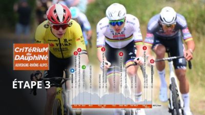 Critérium du DauphinéEt si l'on assistait au même scénario que dimanche ? En effet, le parcours de cette 3e étape du Critérium du Dauphiné est drôlement similaire à celui de la 1ère, où les stars avaient enflammé le final. Avec la Côté du Chateau Jaune (1,2km à 9,2%) placée à moins de 20 kilomètres de l'arrivée, cela pourrait permettre aux puncheurs de s'extirper... à moins que les sprinteurs réussissent à s'accrocher et à revenir pour se jouer la gagne dans les rues de Charantonnay.
