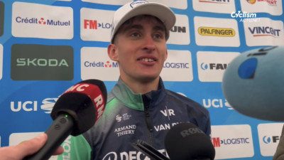 Paul Seixas en interview à l'arrivée de cette Faun Ardèche Classic