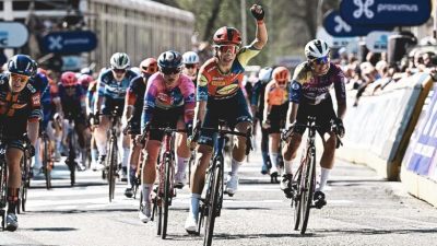 L’équipe Picnic-PostNL, absente de ce groupe, a dû travailler pour ramener le peloton. L’écart est resté mince jusqu’au bout, rendant la fin de course particulièrement tendue. À 1700 mètres de la ligne, les fuyardes ont finalement été reprises, malgré une dernière tentative de Bäckstedt. Lidl-Trek a alors parfaitement lancé son train pour Balsamo. Bien placée, l’Italienne a lancé son sprint au bon moment. Charlotte Kool est revenue fort, mais trop tard ! Chiara Consonni a quant à elle pris la 3e place.