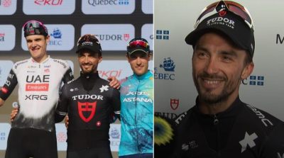 "Honnêtement, je pense que je vais avoir besoin d’un petit peu de temps parce que le Grand Prix de Québec, c’est une course que j’ai toujours rêvé de remporter", débute le Français de 33 ans. "Le réaliser aujourd’hui et de cette manière... c’est aussi pour mon équipe qui a fait un gros travail aujourd’hui", évoque-t-il. "C’est comme vous le dites, ma première victoire depuis l’étape du Giro l’année dernière, donc ça faisait un bon moment et je suis très heureux de cette victoire", affirme-t-il.