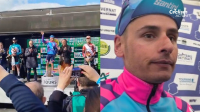 Clément Venturini a remporté ce dimanche 29 mars la 24e édition de La Roue Tourangelle Centre Val de Loire. Le coureur d'Unibet Rose Rockets lève les bras pour la première fois sous ses nouvelles couleurs, il devance au sprint Martin Marcellusi (Bardiani CSF 7 Saber) et Matys Grisel (Lotto Intermarché). Sans équipe jusqu'au 11 décembre dernier, le coureur de 32 ans sait qu'il revient de loin : "Cet hiver, j'ai frôlé la retraite non voulue et Unibet m'a tendu cette chance. Et lui (Bryan Coquard qui vient le féliciter, ndlr) en fait partie parce que cet hiver on était ensemble, il m'a dit "Clément ne lâche rien." Ça a été très dur et du coup forcément dans les derniers kilomètres je ne pensais qu'à ça. Je pensais à deux personnes, mon fils et ma femme qui eux ont enduré tout l'hiver et m'ont poussé à continuer et ils m'ont supporté surtout parce que ça a été loin d'être facile."