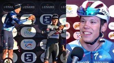 "Je suis quand même derrière l'une de mes plus grandes idoles, Mathieu van der Poel ! Donc je suis très content", s'est même réjoui Paul Magnier en interview d'après-course, lui qui s'est même fendu d'un geste de respect devant la domination de MVDP au moment de franchir la ligne. "C'était un peu un rêve pour moi de courir avec et contre lui... et bon, il était plus fort au final. C'était vraiment un final difficile, avec un dernier secteur pavé juste avant l'arrivée qui était en faux plat montant. C'était dur, car tout le monde voulait prendre sa roue. C'était déjà un peu la guerre avant le sprint, j'ai dû prendre un peu le vent. Après, il a réussi à accélérer, et personne d'autre n'a pu le faire, donc bravo à lui ! Le placement était bien sûr important, tous les efforts dans le vent coûtaient cher sur cette arrivée en montée, mais c'était surtout un sprint dans lequel les jambes ont parlé. Maintenant, je vais profiter de ce podium à côté de Mathieu van der Poel !", a-t-il conclu avec un large sourire.