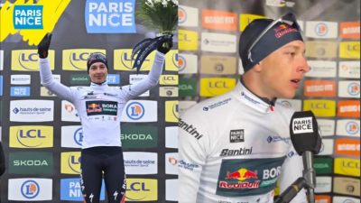 Paris-NiceLa 5ème étape de Paris-Nice a été très animée avec la chute puis la défaillance de Jonas Vingegaard (Visma | Lease a Bike), la superbe victoire de Lenny Martinez, le beau tir groupé des XDS Astana (Champoussin 2ème et Tejada 4ème) ou encore Matteo Jorgenson (Visma | Lease a Bike) qui récupère le maillot jaune. La performance de Florian Lipowitz a pu passer inapercue, mais sa 5ème place au sommet lui permet d'occuper la 3ème place du classement général. Un podium que le coureur de la formation Red Bull-BORA-hansgrohe entend bien défendre.