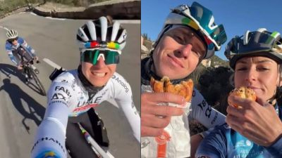 RoutePendant que certains s’enlisent dans les circuits boueux des cyclo-cross en Belgique, comme c’est le cas pour un certain Mathieu van der Poel (Alpecin-Premier Tech), d’autres sont tout sourire sous le soleil de la Côte d’Azur, comme un certain Tadej Pogacar (UAE Team Emirates-XRG). Le champion du monde et champion d’Europe a partagé sur ses réseaux sociaux une vidéo de sa journée sous le soleil, avec comme partenaire d’entraînement, comme dans la vie, Urska Zigart (AG Insurance – Soudal Team). Bref, dès que Tadej Pogacar partage une vidéo sur ses réseaux sociaux... tout le monde reprend et ça fait le buzz, forcément !