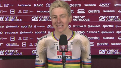 La réaction de Tadej Pogacar après sa victoire sur les Strade Bianche