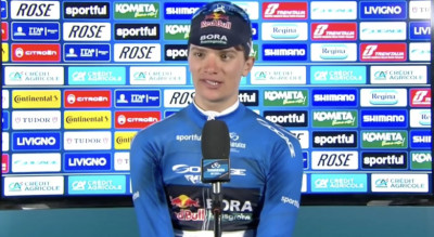 Tirreno-AdriaticoGiulio Pellizzari a décroché la deuxième place juste derrière Mathieu van der Poel, qui a lancé son sprint à 300 mètres de la ligne. La quatrième étape de Tirreno-Adriatico a eu un final explosif. Dans la dernière bosse de la journée, les costauds ont fait la différence. Une quinzaine d'hommes se sont échappé pour aller se disputer la victoire. Parmi eux l'Italien de la Red Bull-BORA-hansgrohe, 2e sur la ligne il a réussi à gérer un dernier kilomètre mouvementé par plusieurs attaques : "je ne sais pas comment j'ai fait, mais quand j'ai accéléré, j'avais déjà beaucoup plus de vitesse que les autres. Et sans Van der Poel je pense que je remportais le sprint, mais il était là. Je suis resté juste derrière. J'ai essayé de récupérer après la montée, puis j'ai sprinté".