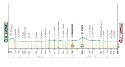 - Mardi 11 mars – Étape 2 : Camaiore - Follonica / 192 km (Départ à 11h25, arrivée du dernier vers 15h45)