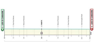 - Lundi 10 mars – Étape 1 : Lido di Camaiore - Lido di Camaiore / 11,5 km, contre-la-montre individuel (Départ du 1er coureur à 12h35, arrivée du dernier vers 15h44)