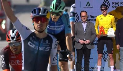 Tour d'AndalousieMaxim Van Gils craignait d'être attaqué de toute part au lendemain de sa prise de pouvoir sur le Tour d’Andalousie... et il avait vu juste ! La 2e étape de l'épreuve andalouse proposait ce jeudi un parcours court (133.2 km) et vallonné qu'ont mis à profit ses nombreux rivaux pour renverser le leader belge à l'issue d'une course à nouveau très enlevée. Principale difficulté du jour à franchir deux fois en milieu d'étape, l'Alto de los Villares (8.8 km à 5.8%) a été fatale au coureur de la Red Bull-BORA-hansgrohe, rapidement isolé et qui n'a pas réusi à intégrer le coup gagnant lorsque la course s'est décantée à 50 bornes du but. Un groupe de cinq costauds s'est alors constitué et a collaboré jusqu'au bout se jouer la gagne à Torredelcampo, où l'arrivée était jugée au sommet d'une courte bosse finale. Et ce sprint en petit comité a logiquement souri au plus rapide d'entre eux, Tom Pidcock !