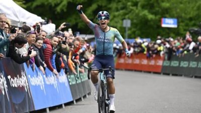 Tour de HongrieAprès deux premières journées réservées aux sprinteurs, les grimpeurs ont enfin pu s'exprimer ce vendredi sur la 3e étape étape du Tour de Hongrie. Et au sommet de l'ascension de Gyöngyös-Kékesteto, le col le plus difficile du pays (11,5km à 5,6%), c'est Harold Martin Lopez qui s'est imposé ! Récent vainqueur du Tour de Grèce et 2e du Tour de Turquie, l'Équatorien de la formation XDS Astana s'est montré le plus fort, en partant en solitaire à 2 kilomètres de l'arrivée. Il prend par la même occasion la tête du classement général. 7 secondes derrière lui, Alessandro Covi (UAE Team Emirates XRG) et Albert Withen Philipsen (Lidl-Trek) ont réglé un petit groupe de leaders pour prendre respectivement les 2e et 3e places.