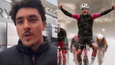 “La semaine passée, il a manqué 50 mètres, aujourd’hui j’avais 50 mètres d’avance, c’est incroyable de faire le coup aujourd’hui et de réussir à tenir. A 50 kilomètres de l’arrivée, l’écart n’était plus que d’une minute, je me suis dit “peut-être que je vais me faire reprendre dans 10 kilomètres”, et puis au final c’est un peu remonté. Sur la fin, avec la pluie, c’était quand même assez technique, avec des petites routes mais l’écart ne descendait pas tant que ça. On me disait “40 secondes” et puis à la fin, à 5 kilomètres, on me dit: “encore 15 secondes”. Je me dis que ça va peut-être revenir assez vite et puis on me répète “15 secondes”, du coup je vois que ça tient.