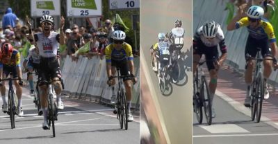 Une manoeuvre qui ne semblait pas forcément très dangereuse ni illicite... mais qui a donc suffi pour qu'Oliveira soit déclassé, même si la décision paraît assez sévère. Après avoir exprimé son mécontent au passage sur la ligne, Fabio Christen est donc finalement déclaré vainqueur et fait coup double en s'emparant du maillot de leader du général. Echappée toute la journée la veille, Christen en avait en effet profité pour engranger toutes les bonifications aux sprints intermédiaires (soit 9" au total), pointant ainsi en 2e position à une petite seconde du vainqueur Groenewegen ce matin. Le Néerlandais n'ayant pas tenu la cadence, Christen endosse logiquement la tunique verte, avec 16" d'avance sur Anders Halland Johanessen et 21" sur Tao Geoghegan Hart, respectivement 2e et 3e sur la ligne après le déclassement.