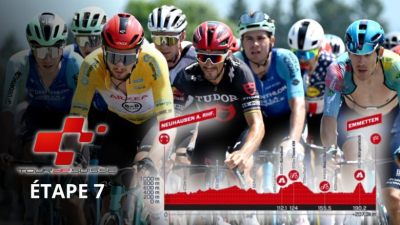 Tour de SuisseSi tout le monde a déjà les yeux tournés vers le contre-la-montre final qui laisse augurer d'une superbe bataille et d'un beau suspense pour clore ce Tour de Suisse dimanche, il ne faut cependant pas négliger la 7e étape qui va avoir lieu ce samedi entre Neuhausen am Rheinfall et Emmetten pour les coureurs visant le classement général ! Avec 207,3 km et 3200 mètres de dénivelé au menu, dont la montée du BürgenStock (5,5 km à 7,9%) à 20 bornes d'une arrivée jugée au sommet d'une bosse d'environ 4 km à 8% de moyenne, il y a encore de quoi faire de beaux écarts sur les routes helvètes. L'opportunité pour Joao Almeida (UAE Team Emirates-XRG) de poursuivre son opération "remontada" et de pourquoi pas déjà s'emparer du maillot Jaune porté par Kévin Vauquelin (Arkéa-B&B Hotels). 39 secondes séparent le Français du Portugais, avec un Julian Alpahilippe (Tudor) intercalé à 29". Ces trois hommes, auxquels on peut rajouter le nom d'Oscar Onley (Team Picnic PostNL), font figure de favoris pour la victoire d'étape... si une échappée ne va pas au bout, auquel cas de nombreux prétendants typés puncheurs sont à envisager.