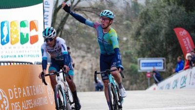 Tour des Alpes-MaritimesAprès la Classic Var, qui a vu s'imposer Christian Scaroni (XDS Astana), le Tour des Alpes-Maritimes débutait ce samedi. Une épreuve de deux jours, où chaque seconde compte. Et sur cette 1ère étape entre Contes et Gourdon (162,4 km), c'est une nouvelle fois Scaroni qui s'est imposé ! Pourtant pris en tenaille par les deux coureurs de la Bahrain Victorious, Santiago Buitrago et Lenny Martinez, l'Italien de la formation XDS Astana a réussi à s'en défaire pour remporter sa deuxième victoire en deux jours.