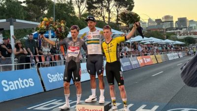 Tour Down UnderAprès son titre de Champion d'Australie du Critérium (dont il a pû porter le maillot sur cette course), Sam Welsford a remporté ce samedi la Villawood Men's Classic, le Critérium du Santos Tour Down Under, qui va lui débuter dès mardi. Parfaitement lancé par son équipe Red Bull-BORA-hansgrohe, l'Australien a totalement écrasé la concurrence dans les 200 derniers mètres, s'imposant avec une grande facilité. Le sprint final a été marqué par une grosse chute, alors que la vitesse des coureurs était très élevée dans le final (68,1 km/h) d'après Sam Welsford.