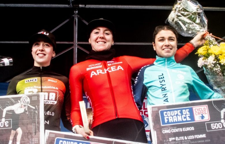 Cyclo-cross - CDFLe trophée de la Coupe de France Élite Femmes va rester une année de plus chez Arkéa Pro Cycling Team ! Lauréate en 2021-2022 avec Amandine Fouquenet et en 2022-2023 avec Anaïs Morichon, l'équipe bretonne peut de nouveau avoir le sourire à l'issue de l'édition 2023-2024, qui s'est terminée ce dimanche à Flamanville. Et comme il y a deux ans, c'est grâce à Amandine Fouquenet que cela a pu être possible. Solidement installée en tête du classement général avant cette ultime manche, la coureuse de 22 ans a validé sa victoire finale avec un succès, le quatrième en six courses. "J’avais envie de gagner aujourd’hui (dimanche) sans penser forcément au classement général", souligne la native de Vitré sur le site d'Arkéa Pro Cycling Team.