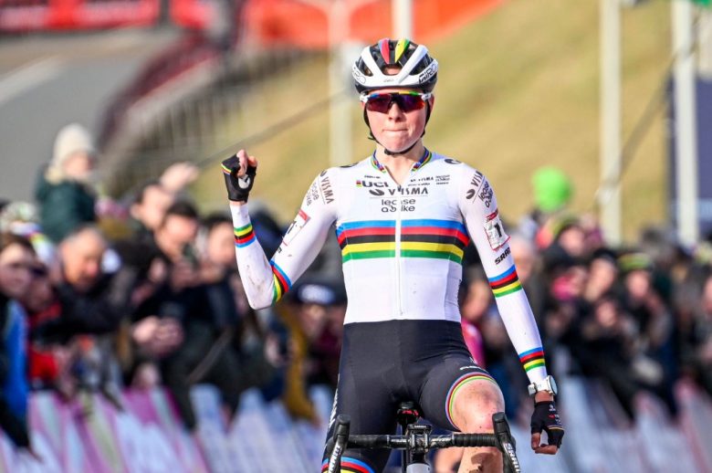 Cyclo-cross - CDMFem Ven Empel, encore et toujours ! Déjà victorieuse la veille sur le X2O Badkamers Trofee de Hamme, la championne du monde a récidivé ce dimanche sur la 14e et ultime manche de la Coupe du monde de cyclo-cross, disputée sur ses terres à Hoogerheide. A domicile, la Néerlandaise de la Team Visma | Lease a Bike a semblé faire ce qu'elle voulait, accélérant dès le premier tour pour créer une première sélection, avant d'attendre tranquillement le dernier tour et le sprint. Celle qui s'impose pour la 5e fois de l'hiver sur le circuit mondial - après Waterloo, Maasmechelen, Anvers et Benidorm - a facilement aligné la surprenante Blanka Vas et Lucinda Brand (Baloise Trek Lions), les deux seules coureuses à avoir réussi à accrocher sa roue. La victoire était le seul enjeu de cette dernière étape, Ceylin del Carmen Alvarado (Alpecin-Deceuninck) étant déjà assurée du sacre au classement général.