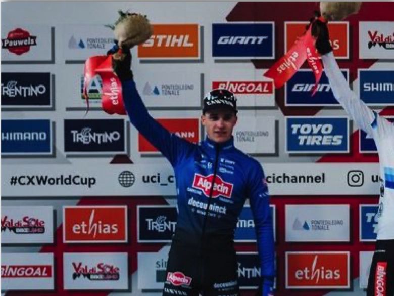 Cyclo-cross - CDMGrande première pour Niels Vandeputte. Le Belge a signé son premier podium de sa carrière en Coupe du monde de cyclo-cross ce samedi sur la 10e manche à Val di Sole (Italie). Alors que son équipier Mathieu van der Poel s'est classé 8e, le coureur d'Alpecin-Deceuninck a été dans le coup du début à la fin. Pour la victoire tout d'abord, avant de céder face au champion d'Europe Michael Vanthourenhout (Pauwels Sauzen-Bingoal). Puis dans le match pour la deuxième place où il a pu maîtriser son adversaire Kevin Kuhn (Tormans Cyclo Cross Team), classé troisième.