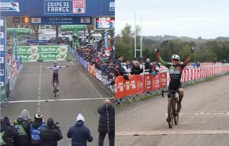 Coupe de FranceLa huitième et dernière manche de Coupe de France de Cyclo-cross a eu lieu ce dimanche à La Ferté-Bernard. Chez les hommes, c'est David Menut qui s'est imposé, confortant sa place de leader au classement général, devant Tony Périou et Joshua Dubau, vainqueur la veille. Menut remporte ainsi sa deuxième Coupe de France, après celle de 2019, devant Tony Périou et Lucas Dubau, frère jumeau de Joshua. Chez les femmes, Noémie Garnier a remporté cette dernière manche, après avoir déjà remporté la septième la veille. Elle a devancé Amandine Vidon, elle aussi déjà deuxième la veille, et Amandine Muller. Au classement général, Noémie Garnier termine à la deuxième place malgré ses deux victoires, échouant à seulement trois points de la vainqueure finale, Amandine Vidon.