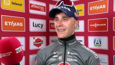 Une belle bagarre pour le podium se lance donc entre Laurens Sweeck (dernier vainqueur à Coxyde), Tibor Del Grosso et Niels Vandeputte. Dans le dernier tour, le leader de la Coupe du monde fait la différence devant le champion des Pays-Bas, et Niels Vandeputte. Devant, Mathieu van der Poel s’impose facilement, comme à son habitude, devançant Laurens Sweeck, qui conforte sa place de leader au classement général de la Coupe du monde, en l’absence de Thibau Nys. Vandeputte complète le podium.