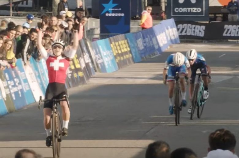 Cyclo-cross - EuropeAprès le sacre de l'Italie la veille sur le relais mixte, les Championnats d'Europe de Cyclo-cross 2024 à Pontevedra se poursuivent ce dimanche avec un programme de folie et pas moins de six titres européens en jeu tout au long de la journée. C'est la course Juniors Femmes qui a ouvert le bal tôt ce matin, avec la victoire de la Suissesse Anja Grossmann ! Celle qui succède au palmarès dans la catégorie U19 à la Française Célia Géry s'est imposée à l'issue d'un effort de 37 minutes et 30 secondes et d'une belle bataille à trois avec la Tchèque Barbara Bukovska et l'Italienne Giorgia Pellizotti, qu'elle a finalement dominées au finish et dans cet ordre dans le dernier tour.