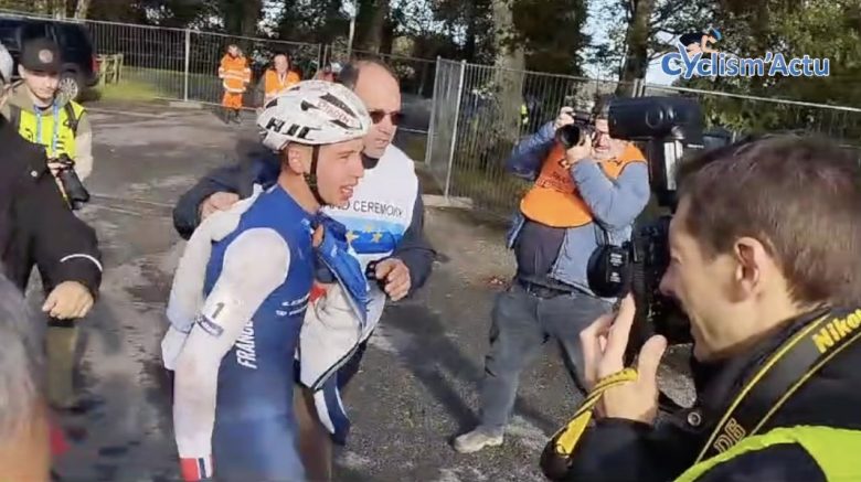 Cyclo-cross - EuropeJour de fête pour l'équipe de France à Pontchâteau ! Les coureurs tricolores sont en feu sur ces Championnats d'Europe de cyclo-cross et apportent déjà à la France un troisième titre européen... en seulement trois courses ! Après le relais mixte vendredi et Célia Géry quelques minutes plus tôt, c'est Aubin Sparfel qui s'est paré d'or ce dimanche matin sur la course Juniors. Le pensionnaire d'AG2R Citroën U19 Team a remporté son duel au sprint avec le Hongrois Zsombor Takacs après plus de 43 minutes d'efforts. Un bonheur n'arrivant jamais seul, Jules Simon accompagne son compatriote sur le podium et ajoute du bronze à la razzia française. Paul Seixas (6e), Louis Tanguy (8e) et Maxime Vezie (9e) participent également à la fête. Aubin Sparfel succède au palmarès à son aîné Léo Bisiaux, qui participera à l'épreuve Espoirs ce midi.