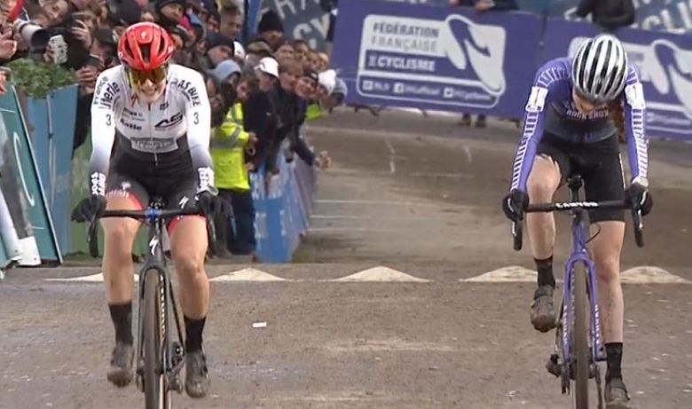 Cyclo-cross - FranceAvant-dernier rendez-vous des Championnats de France 2023 de cyclo-cross, disputés ce week-end à Bagnoles de l'Orne, la course Élites / Espoirs Femmes a vu la victoire de Hélène Clauzel (AS Bike Racing), titrée pour la première fois de sa carrière. Battue par Line Burquier (Canyon CLLCTV) l'an dernier à Liévin, l'Alsacienne a pris sa revanche par rapport à la Haut-Savoyarde. En tête quasiment toute la course, Clauzel a cependant bien failli tout perdre dans la dernière ligne droite, Burquier ayant réussi une fin de course incroyable. Cette dernière - sacrée dans la catégorie Espoirs - a finalement échoué à quelques centimètres de sa rivale et du doublé. La troisième place est revenue à Perrine Clauzel, qui a franchi la ligne 45 secondes après sa soeur et coéquipière, parachevant ainsi le triomphe de la famille Clauzel. Lauriane Duraffourg (AS Bike Racing) et Amandine Vidon (Team Fima-RDV Bikeshop Alian) ont complété le top 5, tandis que Amandine Fouquenet et Anaïs Morichon, les deux coureuses d'Arkéa Pro Cycling Team, ont fini à des décevantes sixième et septième places.
