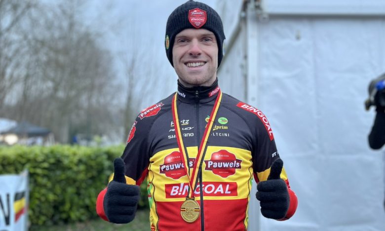 Eli Iserbyt, avec son maillot et avec une victoire