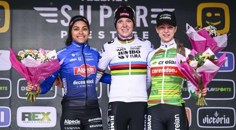 Les deux Bataves ont alors abordé le dernier tour ensemble pour un superbe duel final, Alvarado se sachant moins rapide au sprint et condamnée à distancer son adversaire avant la dernière ligne droite. Sans succès, malgré plusieurs accélérations et erreurs techniques des deux concurrentes. Inge van der Heijden (Crelan-Corendon) vient compléter ce podium 100% néerlandais à 16". Seulement 6e ce mercredi, Annemarie Worst (Cyclocross Reds), conserve malgré tout la tête du classement général de la compétition avec 74 points, soit une unité de plus que Ceylin del Carmen Alvarado ! La prochaine étape aura lieu dès demain à Diegem.