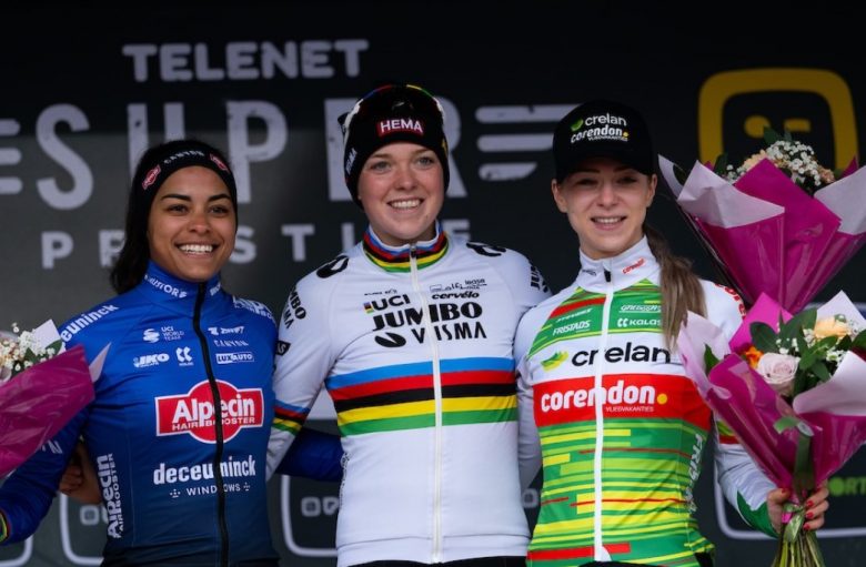 SuperprestigeFem van Empel s'est fait peur ce mercredi, mais elle a bien rectifié le tir au lendemain de sa première défaite de la saison ! Poussée dans ses derniers retranchements par Ceylin del Carmen Alvarado (Alpecin-Deceuninck) sur le parcours de Heusden-Zolder, où se déroulait la 6e manche du Telenet Superprestige, la Néerlandaise de la formation Jumbo-Visma a dû attendre le sprint final pour venir à bout de sa compatriote et ainsi remporter sa 12e victoire de la saison en treize apparitions. "C'était un très beau circuit et le public était vraiment génial. J'avais vraiment envie d'être bonne ici. Après hier, je suis très heureuse d'avoir pu gagner à nouveau. C'était une très belle bataille ! " a d'abord réagi la championne du monde dans l'aire d'arrivée.