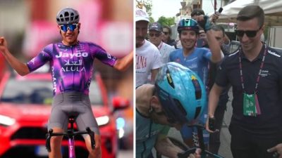Tour d'ItalieAprès la victoire de Juan Ayuso (UAE Team Emirates XRG) vendredi, la 8e étape s’annonçait comme une journée de transition. Avec plusieurs ascensions et un final vallonné, le profil convenait aux baroudeurs du 108e Giro d’Italia. Ce sont d’ailleurs des échappées qui se sont jouées la victoire à Castelraimondo. Alors que Romain Bardet (Team Picnic PostNL) se trouvait à l'avant, c'est Luke Plapp (Jayco AlUla) qui s'est imposé en solitaire. L'Australien a réalisé un numéro de plus de 40 kilomètres. Présent dans l'échappée, Diego Ulissi s'empare du Maillot Rose pour 12 secondes devant son équipier Lorenzo Fortunato.