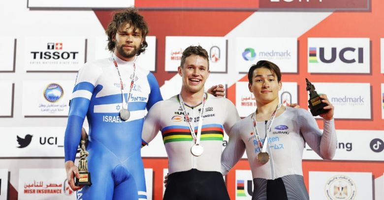 Vitesse individuelle (H) : 1. Harrie Lavreysen (NED) 2. Mikhail Yakovlev (ISR) 3. Kaiya Ota (JAP)