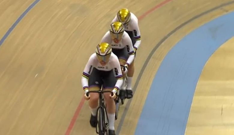 Piste - EuropeChampionnes d'Europe et triple championnes du monde en titre, les Allemandes ont poursuivi leur archi-domination en vitesse par équipes en récoltant une nouvelle médaille d'or continentale ce mercredi lors des Championnats d'Europe de cyclisme sur piste, disputés cette semaine à Granges (Suisse). Chahutées lors des deux premiers tours avant de s'envoler dans le dernier, Pauline Sophie Grabosch, Emma Hinze et Lea Sophie Friedrich ont battu en finale les Britanniques Lauren Bell, Emma Finucane et Katy Marchant. Opposée aux Pays-Bas en petite finale, l'équipe de France (Marie-Divine Kouamé, Julie Michaux et Mathilde Gros) a complètement manqué son départ, ce qui l'a empêché de rivaliser avec les Néerlandaises. Comme l'an dernier à Munich, la France termine donc à la quatrième place de cette épreuve